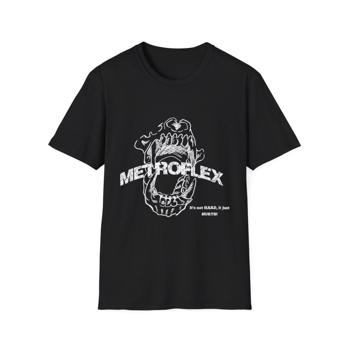 This one bites back. The Metro Bite Tee features a bold jaw graphic with METROFLEX front and center, symbolizing raw power and unbreakable grit. The phrase “It’s not HARD, it just HURTS!” stamped on the front says it all—pain is part of the process, and only the strong push through.